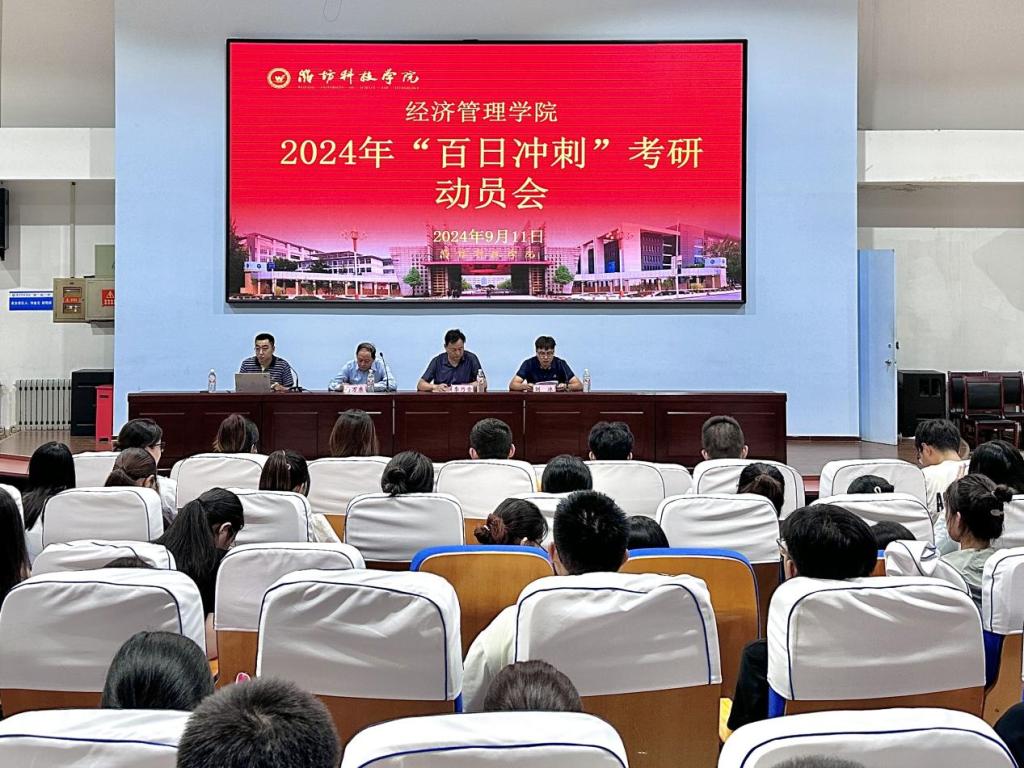为助力考研学子在冲刺关键阶段明确方向、增添动力,经济管理学院于9月11日在经管报告厅开展“百日冲刺”考研动员会,为即将踏上考研征程的学子们照亮前行的道路,激发昂扬斗志。经济管理学院副院长刘冰、考研指导老师高万东教授、李乃金老师及2024、2025届考研学生参加本次动员会。