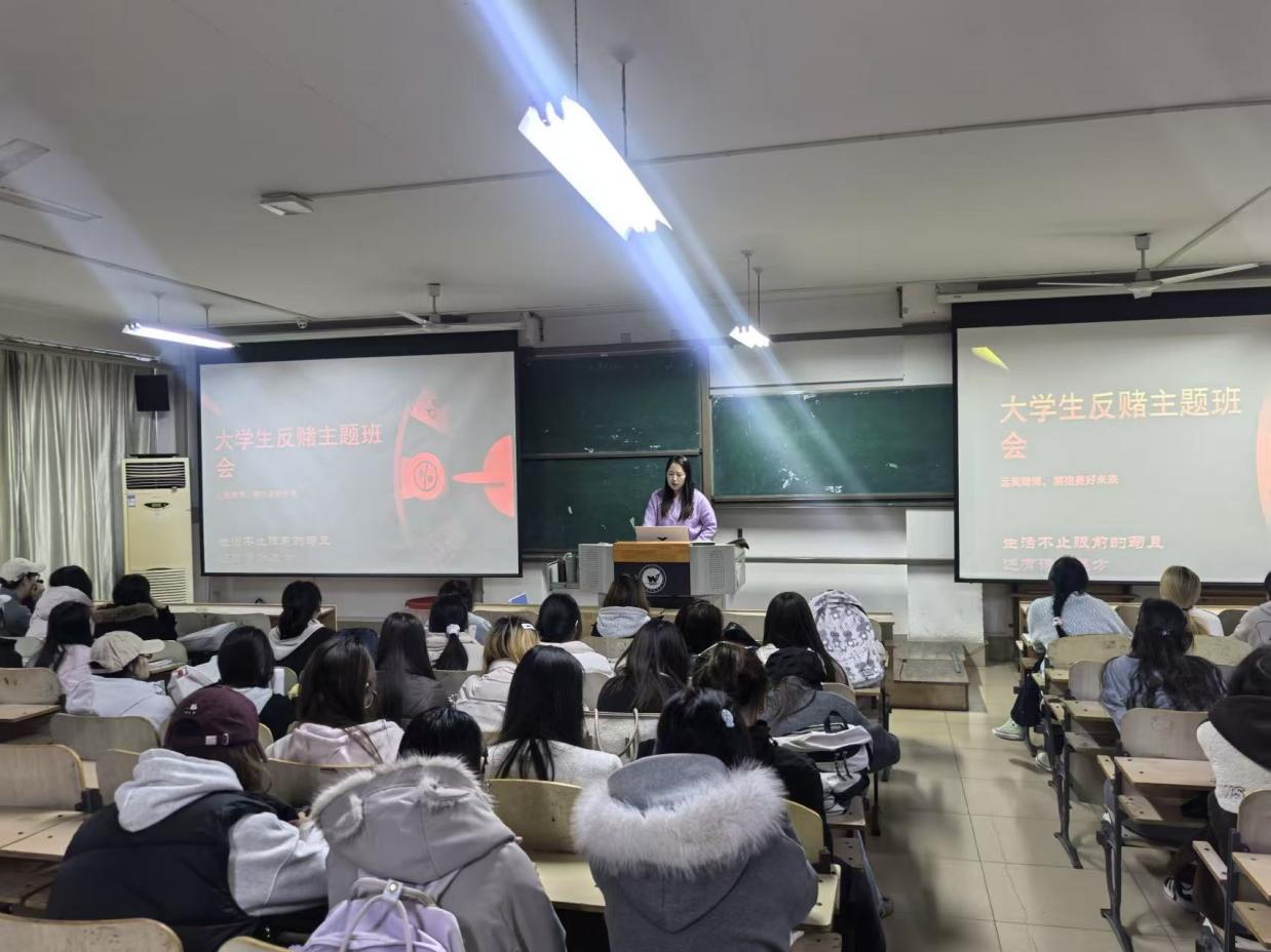 经济管理学院开展“青春拒赌,守护未来”反赌主题班会。各辅导员结合高校学生涉赌典型案例,讲解校园隐性赌局等常见套路,并播放反赌警示教育短片,直观呈现赌博对个人学业、家庭关系及身心健康的破坏。班会特设讨论环节,同学们围绕反赌知识展开讨论,进一步强化防赌实操意识。此次反赌主题班会的集中开展,将反赌教育融入日常班级管理,有效提升了学生的风险防范意识。