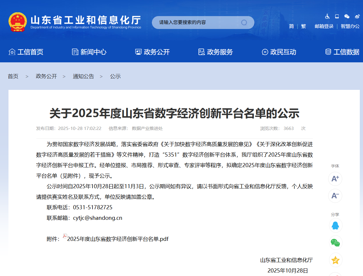 近日,山东省工业和信息化厅公示了2025年度山东省数字经济创新平台名单。经过严格的单位提报、市局推荐、形式审查、专家评审等多轮程序,由我校经济管理学院牵头申报的“山东省数字经济创新人才基地”成功入选。平台获批是学校积极服务国家战略和区域经济发展取得的又一标志性成果,标志着我校在数字经济创新人才培养和服务地方发展方面迈上了新台阶。