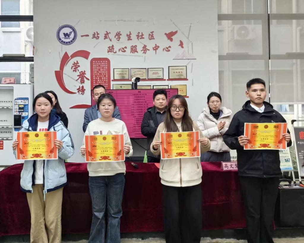 活动伊始,褚雪书记强调,宿舍不仅是学生学习生活的重要场所,更是凝聚集体力量、涵养品德素养的关键阵地。她对本届宿舍文化建设活动在营造浓厚宿舍氛围、增强集体凝聚力方面所取得的显著成效给予了充分肯定,指出本次活动是学生“一站式”教育在宿舍场景深度融合的生动体现。随后,于江学书记对此次活动所展现出积极向上的风貌予以肯定,希望宿舍文明之风能够在校园发扬、传递,进一步丰富学生“一站式”教育的内涵。公寓管理中心副主任唐汝恒向获奖宿舍表示祝贺,并表示未来将持续优化服务,为同学们创造更加优质的生活环境,助力学生“一站式”教育的高质量开展。最后,优秀宿舍成员代表上台领奖,并分享了优秀宿舍建设的感悟,全体人员一同合影留念。