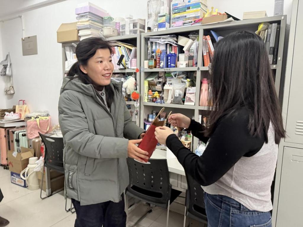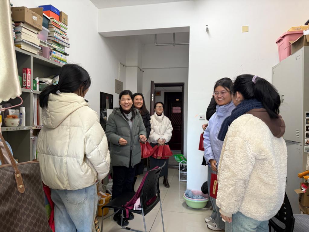 冬意渐浓,研途逐光。11月27日,经济管理学院院长丁莹莹、团总支书记褚雪及2026届毕业生辅导员一行深入学生宿舍,为正奋战在考研冲刺赛道上的学子们送上精心筹备的慰问礼品与深切关怀。宿舍内暖意融融,师生畅谈,笑语驱散了备考的疲惫,情谊在殷切叮嘱中悄然流淌。
