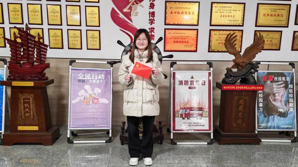 经济管理学院以红色思政为引领、以德育人为核心,开展“与国旗同框,让青春向党”校园合影活动。同学们手持小国旗,于教学楼、林荫道等校园地标处定格身影,以镜头镌刻对国旗的尊崇与热爱,同学们互相分享红色故事、抒发爱国感悟,将赤子之心转化为崇德向善的行动自觉,切实践行以德育人、铸魂育人的教育使命。