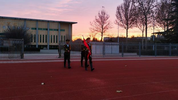 经济管理学院团总支书记褚雪带领同学们开展红色爱国主题升旗仪式。同学们身姿挺拔、整齐列队,当激昂雄壮的《义勇军进行曲》奏响,鲜艳的五星红旗在微风中冉冉升起。同学们纷纷昂首挺胸,目光紧紧追随国旗,以庄严的注目礼,表达对伟大祖国的无限热爱与赤诚忠心。