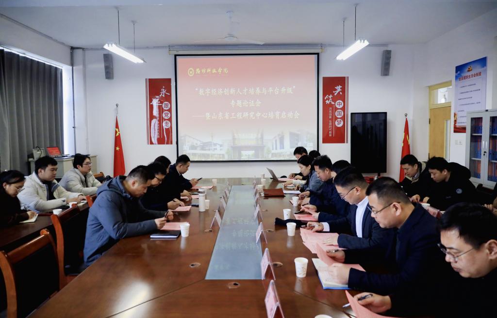 12月26日下午,为进一步贯彻落实国家关于数字经济发展的重要部署,推动我校数字经济人才培育与平台升级,经济管理学院组织召开“山东省数字经济创新人才基地”建设专题论证会暨山东省工程研究中心培育启动会,推动数字经济领域高层次人才培育与科研平台协同发展。会议由经济管理学院院长丁莹莹主持,我校学科建设与研究生教育处、科研处、人文社科基地和经济管理学院等部门负责人,以及来自山东理工大学、山东知链信息科技有限公司、寿光市大数据中心、寿光发展集团等单位的特邀专家参加会议。
