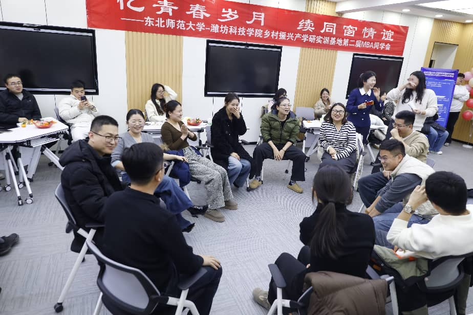 为深化产学研融合育人成效,搭建实训基地学员交流平台,12月27日,东北师范大学-潍坊科技学院乡村振兴产学研实训基地第二届同学会在我校E15-114教室顺利举行。东北师范大学-潍坊科技学院乡村振兴产学研实训基地2022级、2023级、2024级三届同学代表及2025级全体学生相聚一堂,通过文艺表演、趣味互动等形式共叙同窗情谊,共话乡村振兴发展。