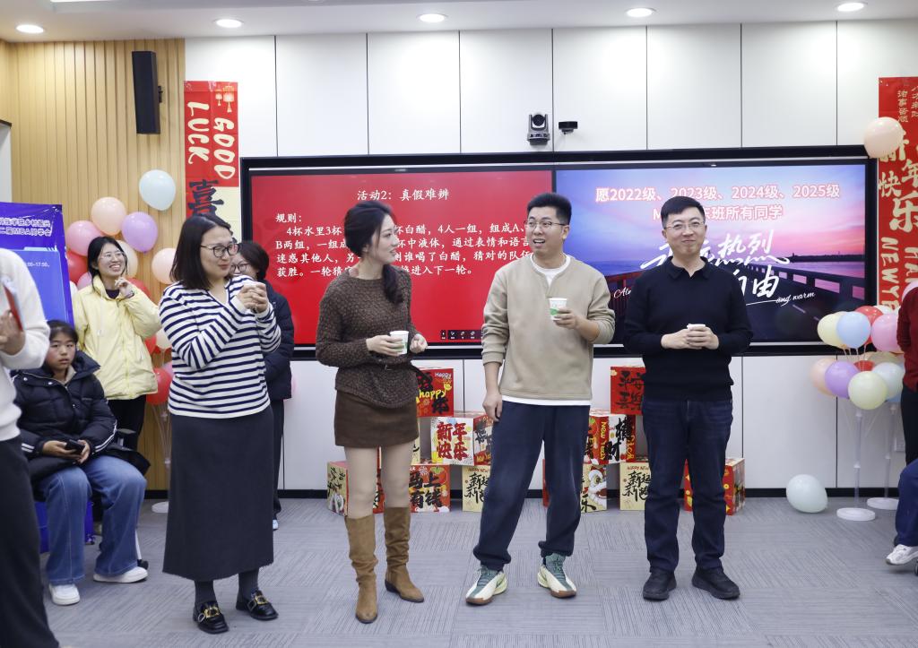 本次同学会以“忆青春岁月,续同窗情谊”为主题,经济管理学院副院长刘冰、研究生办公室主任田海燕参加。主持人介绍各项活动及规则,同学代表们以一首合唱《后来》点燃现场气氛。之后,随着“数字陷阱”“真假难辨”“速猜风暴”“你画我猜”“听歌识曲”等趣味游戏轮番登场,现场气氛热烈,笑声与掌声此起彼伏。大家在轻松氛围中进行思维拓展和团队协作,通过默契配合与智慧碰撞,进一步增进彼此间的了解。