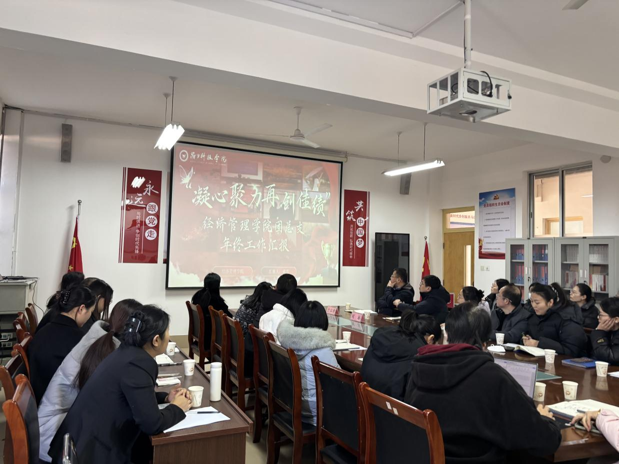 会议由于江学书记主持,由各部门按照工作完成情况、存在问题和未来改进措施三个部分进行汇报。汇报过程中,各教研室主任就本年度工作开展情况、教科研工作成效进行了汇报,并提出了当前专业建设和发展面临的挑战,就今后发展方向提出了规划思路。学生科和团总支则从学生服务、家校共育、学团活动等方面进行了系统总结,明确了下一年的工作思路和目标。教学科、MBA办公室、综合办公室等部门就自身职责履职情况、工作过程中面临的痛点和短板进行了汇报。汇报结束后,丁莹莹院长针对专业转型发展、硕士点建设、横向课题以及虚拟教研室等重点工作进行了总结和指导,系统规划了下一年工作的总体思路,提出了具体指导意见和建议。