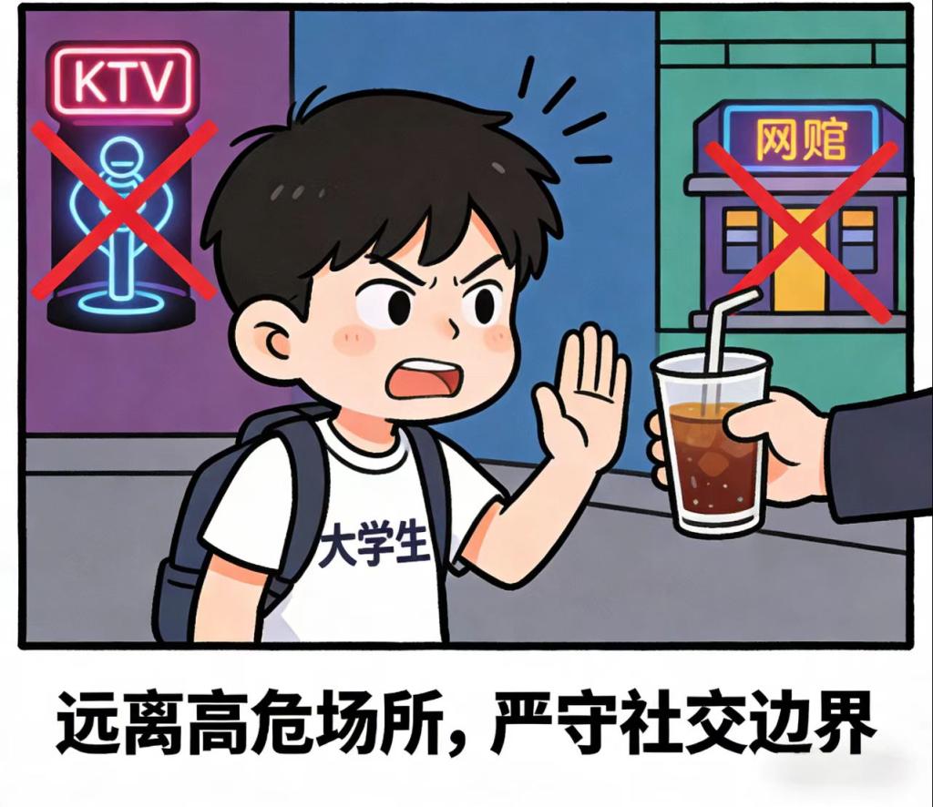 1.远离高危场所。不随意进入校园周边无正规资质的KTV、酒吧、网吧、台球厅等娱乐场所,这些场所是毒品传播的高发区域,极易被不法分子引诱涉毒。