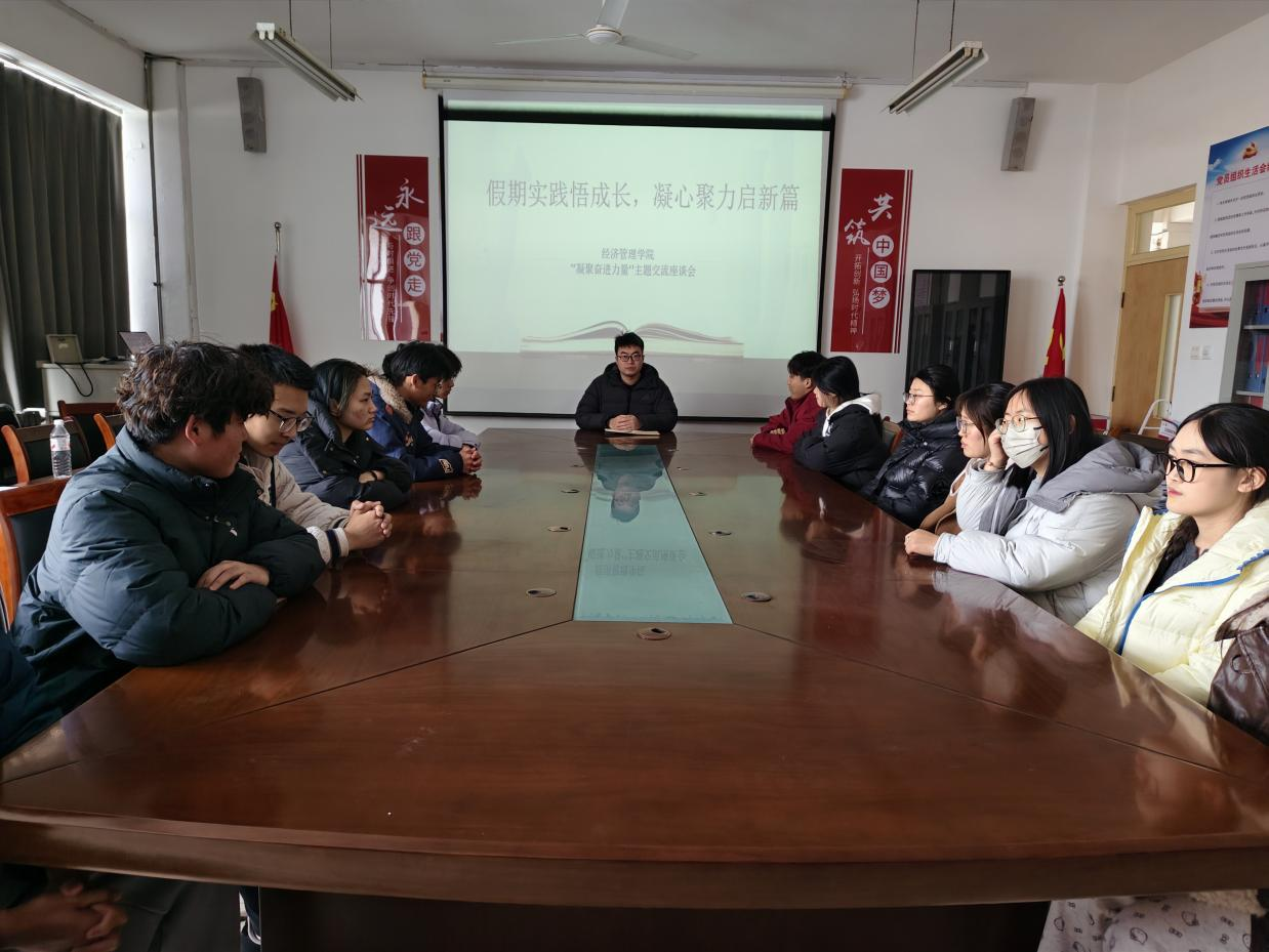 经济管理学院组织开展假期交流座谈会,韩信步老师与同学们共话假期点滴,共谋成长蓝图。同学们踊跃发言,围绕寒假期间的志愿服务、家庭生活等内容,生动分享了各自的成长故事与实践感悟。同时立足自身实际,围绕学业提升、能力培养、目标规划等内容畅所欲言,明确了新学期的努力方向与奋斗目标。