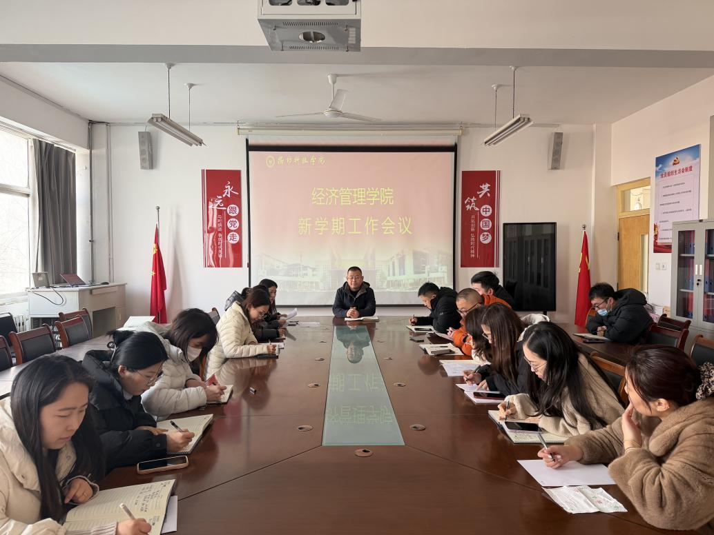 经济管理学院开展“开学第一课”辅导员专题会议。会议围绕新学期学生思想引领、安全教育、日常管理、宿舍走访等重点工作进行系统部署与专题培训。学院党委书记于江学强调全体辅导员要强化责任担当,引导学生收心归位、明确目标,以良好精神风貌投入新学期学习生活。